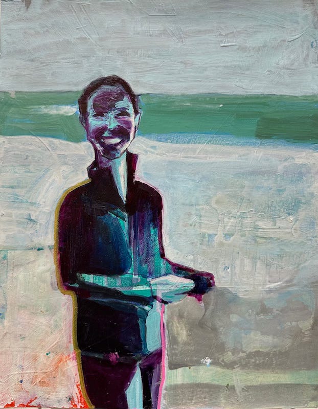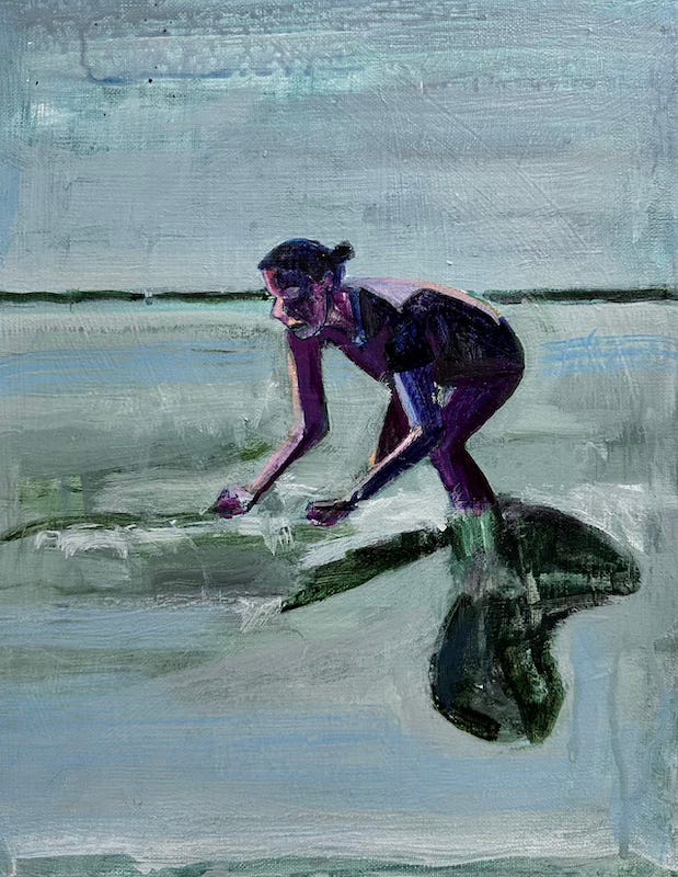 When she is at the beach, all of that falls away as she focuses on catching a glint in the sand, or a point, some arrowhead of the seas.
